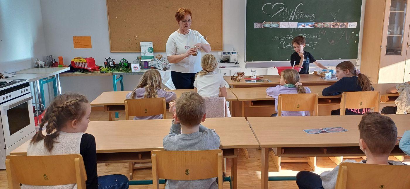 Diese Woche bekamen wir Besuch von Maria Werlberger. Sie ist Seminarbäurin und bietet über das LFI verschiedene Angebote an. Maria verbrachte mit uns einen spannenden Vormittag. Sie führte den Vortrag mit viel Leidenschaft und beantwortete geduldig die vielen Fragen der Kinder. Ihre Liebe zum Hof der Familie ,,Lierstätt" war spürbar, authentisch und inspirierend.