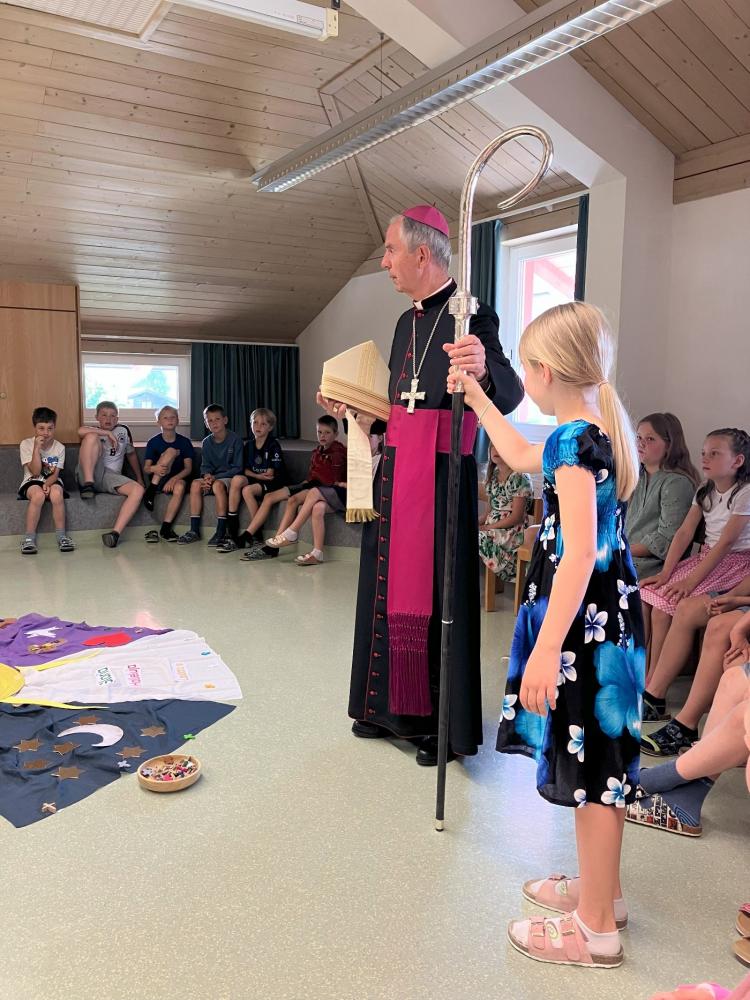 Am 13. Juni durften wir Weihbischof Dr. Hansjörg Hofer an der Volsschule Itter willkommen heißen. Es wurde gemeinsam gesungen und gefeiert. Dr. Hofer nahm sich auch Zeit um auf die Fragen der Schüler und Schülerinnen sehr kindgerecht einzugehen. Dieser Besuch war für unsere Schulgemeinschaft ein beeindruckendes Erlebnis, das noch lange nachklingen wird.