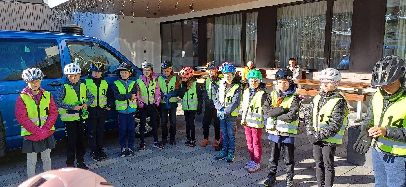 Es war ein sonniger, aber etwas kalter Vormittag. Das erste Training für den Fahrradführerschein begann pünktlich. Alle 4. Klässler trugen Warnwesten, was die Sichtbarkeit erhöhte. Die Übungsschritte umfassten Handzeichen, Schulterblick und sichere Fahrmanöver. Die Kinder übten fleißig und hochmotiviert: Alle zeigten Geduld, konzentriertes Vorschau- und Bremsverhalten. Besonders auffällig war die steigende Selbstsicherheit beim Abbiegen und Queren. Die Gruppe hielt Abstand, achtete auf Signale und nutzte die Aufzeichnungen am Boden als Orientierung. Am Ende waren alle motiviert, weiter an ihren Fähigkeiten zu arbeiten um den Fahrradführerschein bald zu erhalten.