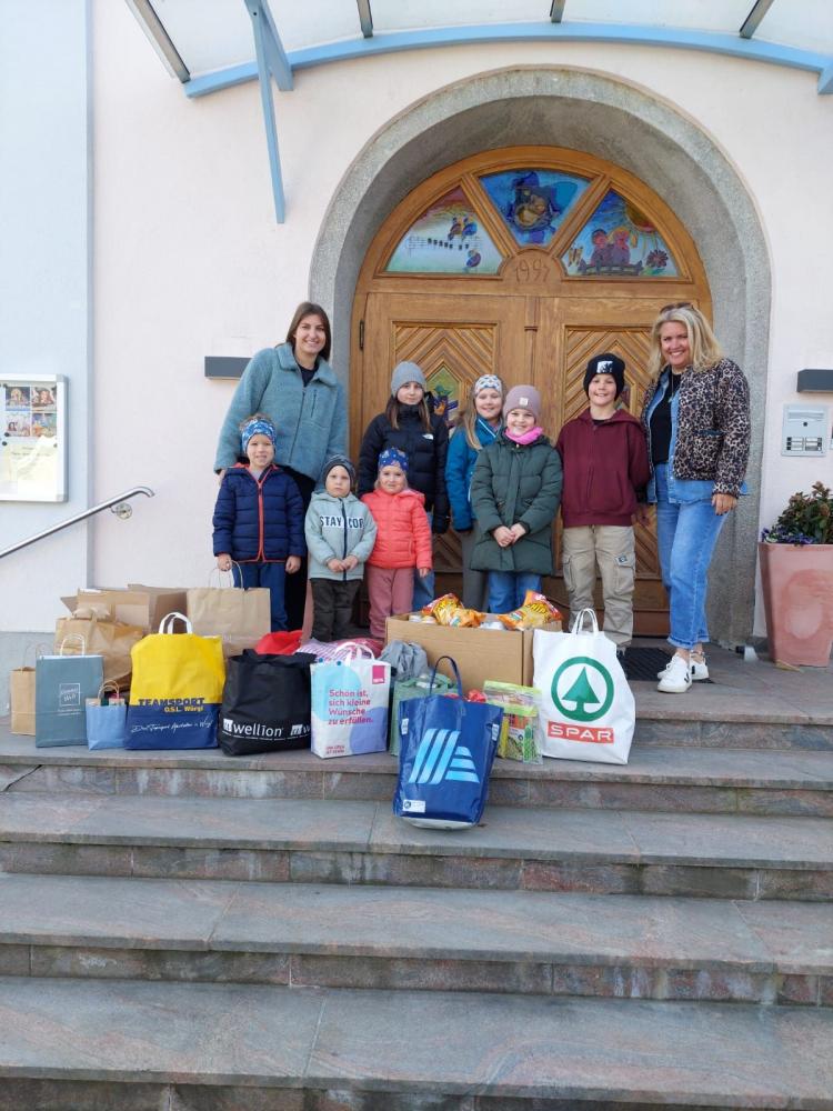 Unter dem Motto ,,Kinder helfen mit" haben die Kinder aus dem Kindergarten und der Volksschule fleißig Lebensmittel und Hygieneartikel für eine Spendenaktion der Caritas gesammelt. Mit großer Freude und viel Hilfsbereitschaft brachten sie gemeinsam mit ihren Familien zahlreiche Produkte mit. Gespendet wurden unter anderem haltbare Lebensmittel wie Reis, Nudeln, Mehl und Konserven sowie Hygieneartikel wie Zahnbürsten, Duschgel, Seife und Windeln.