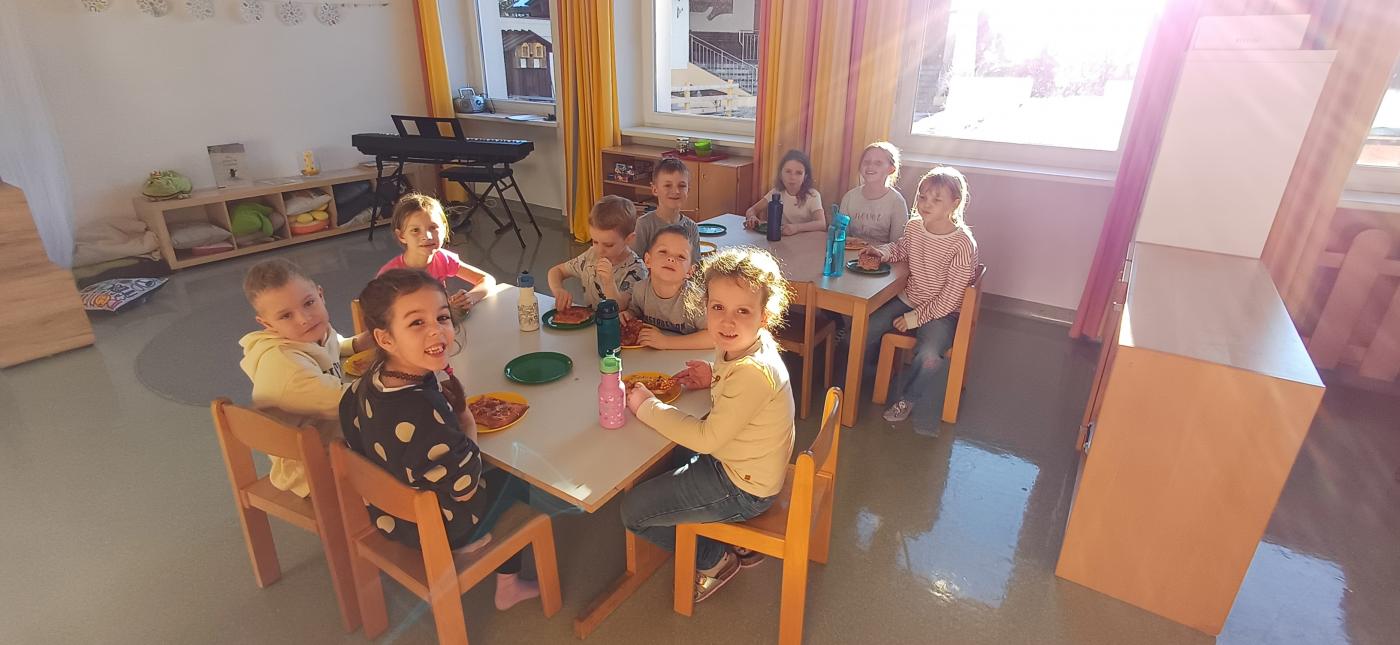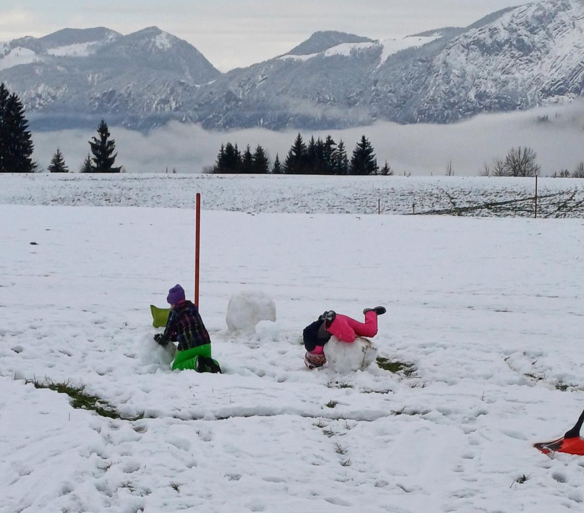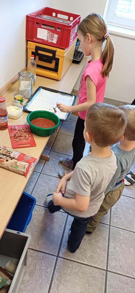 Auch die Nachmittagsbetreuung war sehr aktiv und so zog uns der Schnee hinaus, wir bastelten, experimentierten gemeinsam und kochten mit dem Kindergarten leckere Pizzabrote.