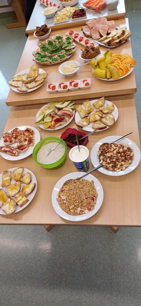 Als ob das noch nicht genug wäre, bereiteten uns die Eltern der MST1 eine gesunde Jause zu, die allen sehr schmeckte. Vielen Dank an alle Eltern der MST1 für die leckere Jause.