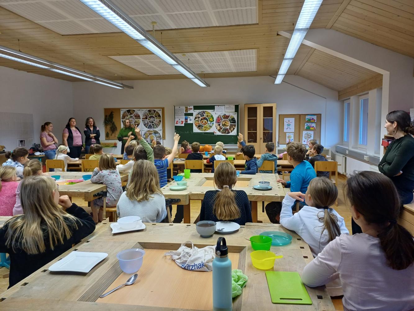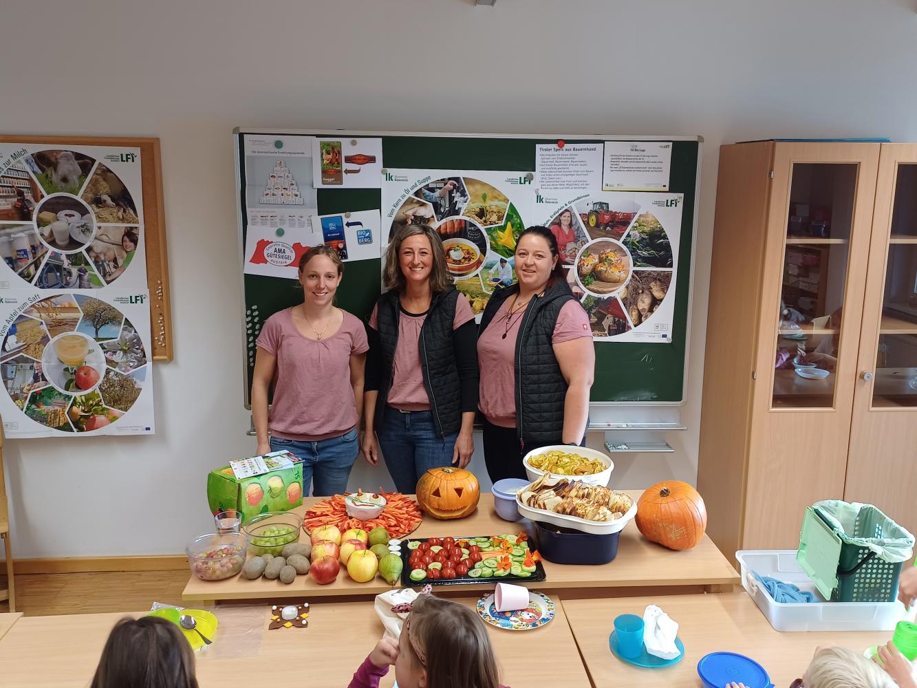 Am 25. Oktober besuchten uns wie jedes Schuljahr die Ortsbäuerinnen um uns regionale Lebensmittel näher zu bringen. Mit einer leckeren Kartoffelsuppe, Aufstriche, Gemüse, Obst und selbstgemachten Kartoffelbrot wurden wir verwöhnt. Danke an die Ortsbäuerinnen für die lehrreichen Stunden und für das leckere Essen.