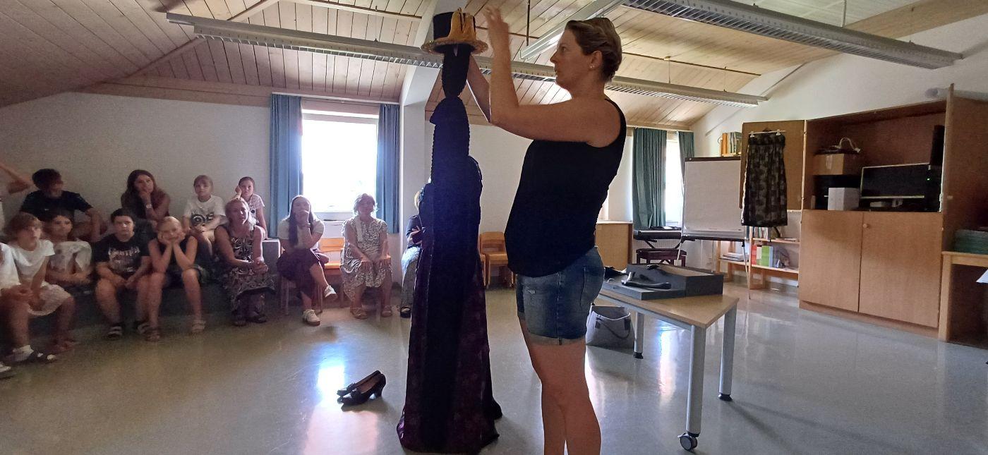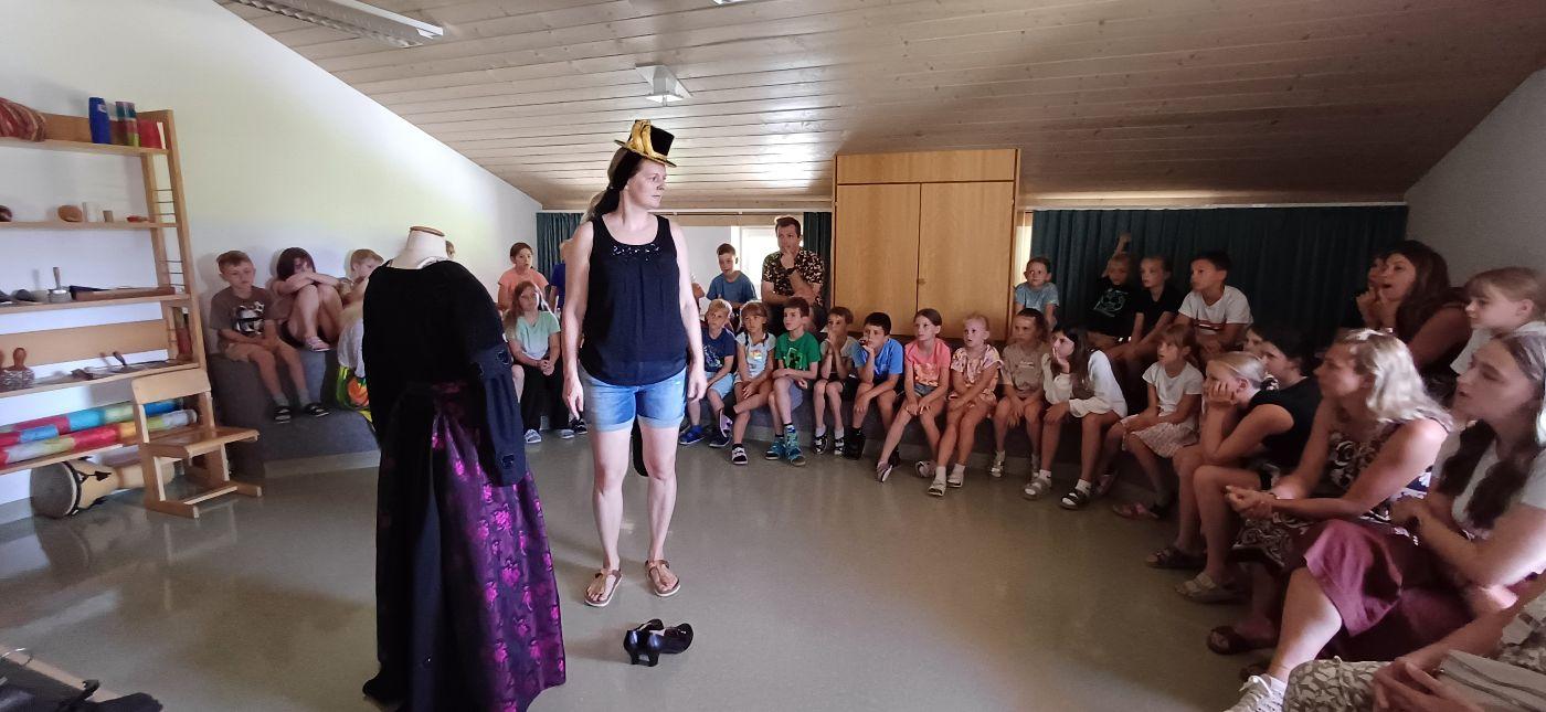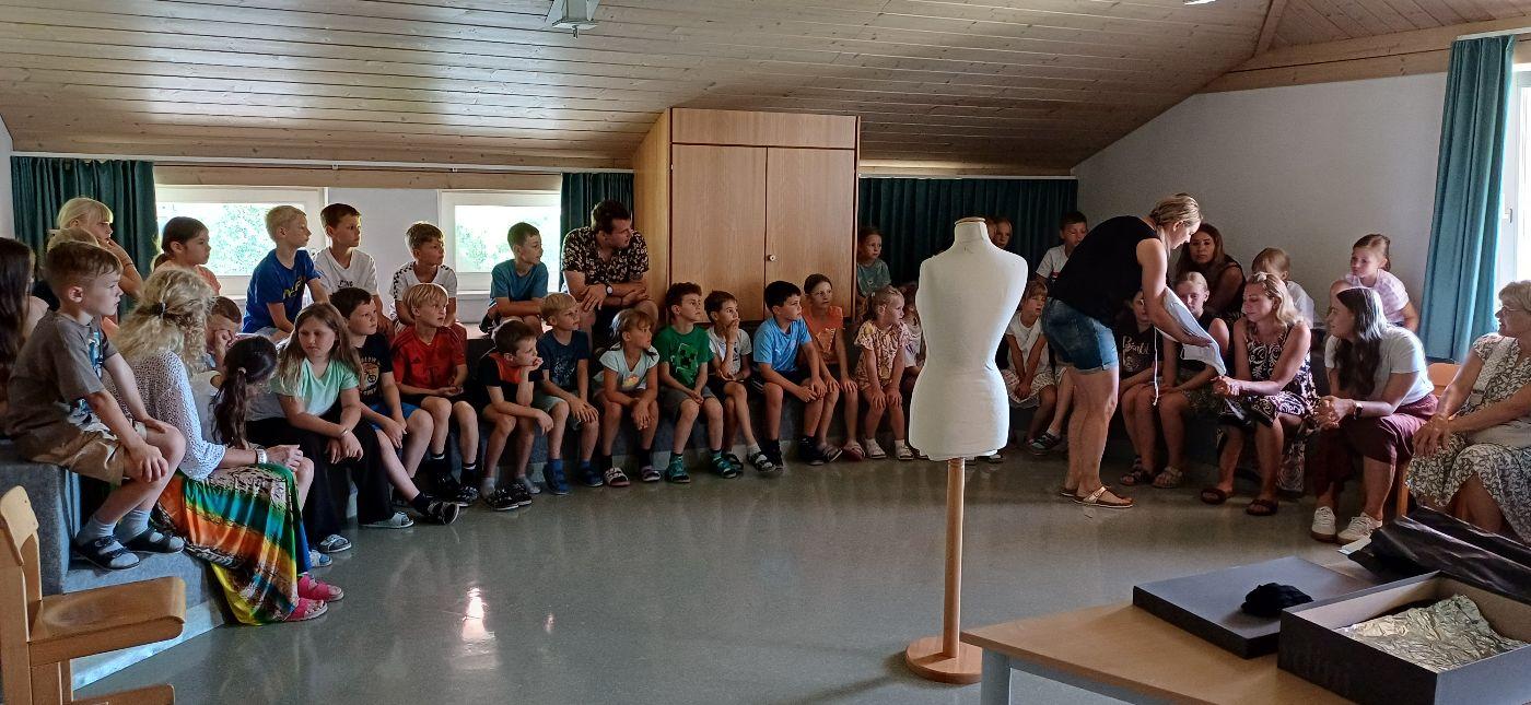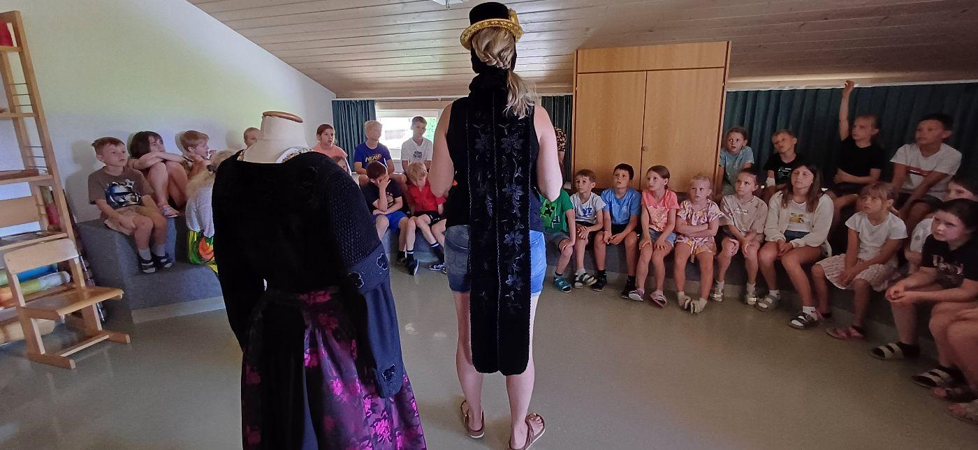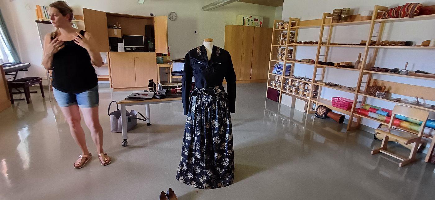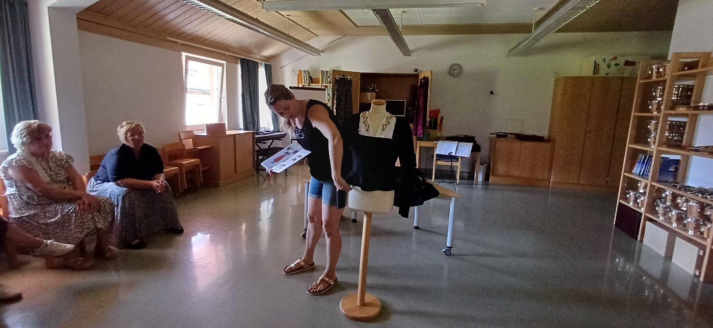Am Donnerstag besuchte uns Annemarie Schipflinger in ihrem Kasetl. Sie zeigte uns stolz ihre Sammlung und ließ uns alles genau erkunden. Wir durften die verschiedenen Gegenstände anfassen. Besonders beeindruckend war ihr wunderschönes Kleid, das sie der Puppe anzog. Es war mit großartigen Stickereien verziert, die filigran und detailreich gearbeitet waren. Das Kleid strahlte Eleganz und Handwerkskunst aus und zog alle Blicke auf sich. Annemarie erklärte uns die Bedeutung der Stickereien und erzählte interessante Geschichten dazu. Der Vormittag war eine wunderbare Erfahrung, bei der wir viel über Traditionen und Kunst gelernt haben. Insgesamt war es ein unvergessliches Erlebnis, das unsere Wertschätzung für Handarbeit und Kultur vertiefte.