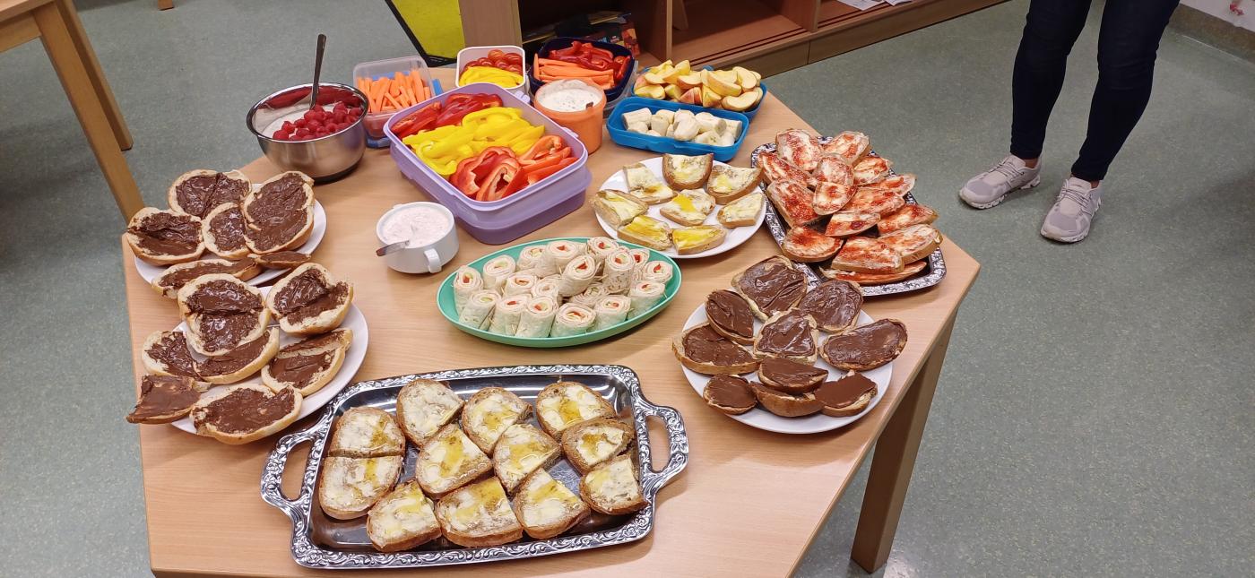 Danach ging es zurück zur Schule wo uns ein liebevolles und sehr leckeres Frühstück erwartete, was die Eltern der MST2 für alle hergerichtet haben.