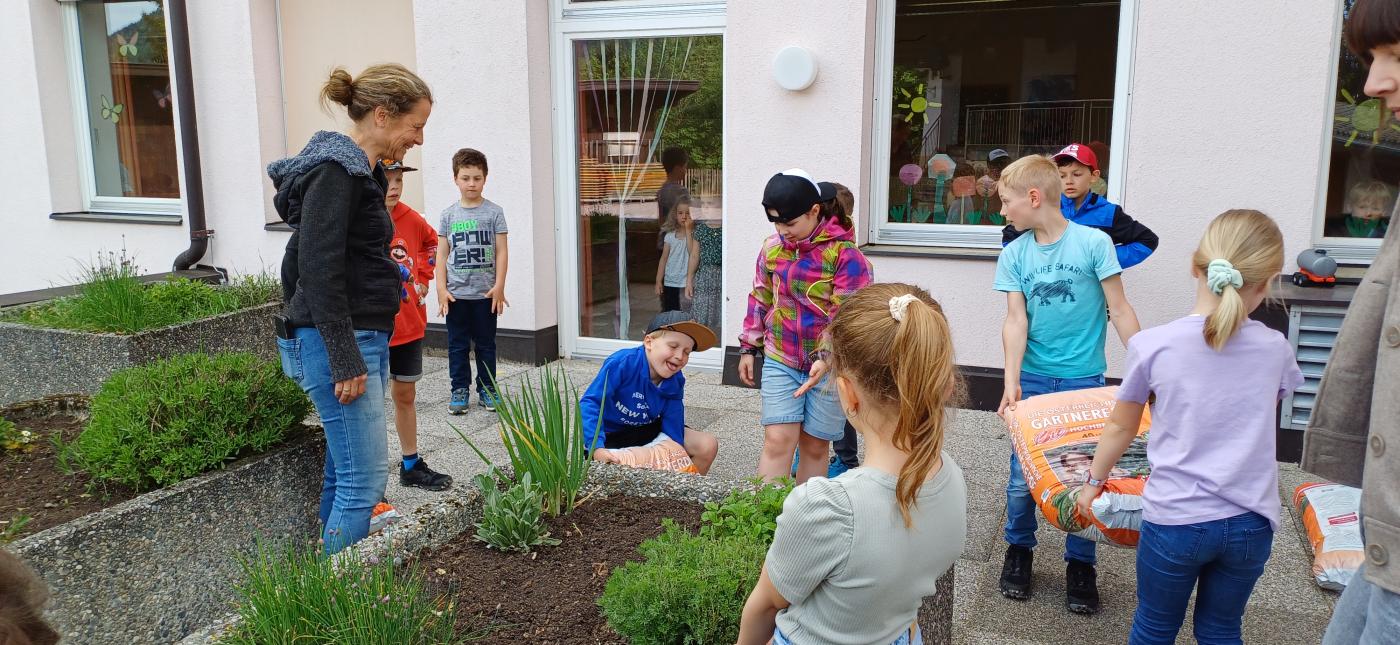 Ein großer Dank geht an Johanna Obwaller, die jedes Jahr mit den Kindern den Schulgarten bepflanzt.